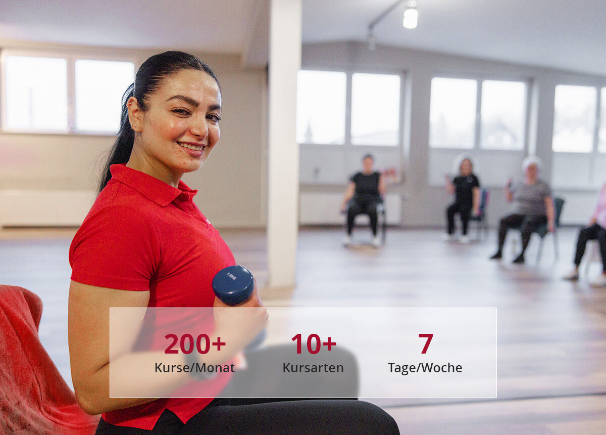 Unter professioneller Anleitung unserer geschulten Trainer:innen trainierst Du in kleinen Gruppen – gezielt, sicher und mit dem Ziel, Beschwerden aktiv anzugehen, Deinen Alltag zu erleichtern und neue Lebensfreude zu gewinnen.